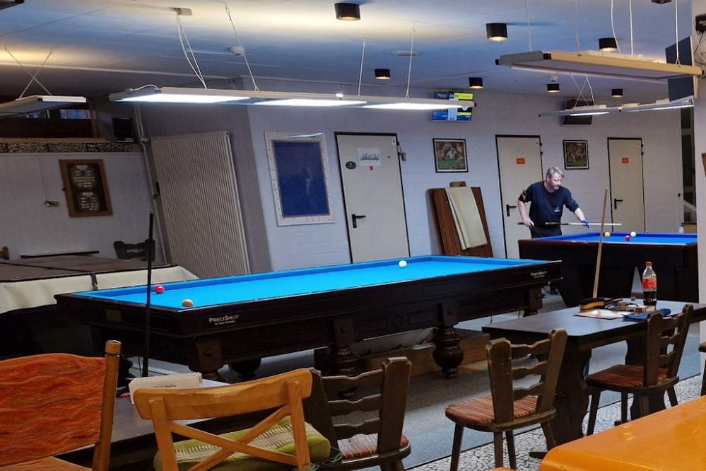 Das Besondere daran ist: es ist nicht das allgemein bekannte Poolbillard, sondern bei uns wird Carambol-Billard gespielt. Spielarten hier sind die Freie Partie, Einband, Cadre und Dreiband.