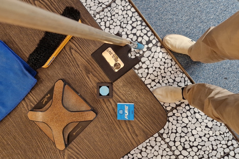 So ähnlich, aber mit Grenzen. Für Fortgeschrittene. Die Pflege der Tische wird von den Mitgliedern übrigens in konzentierter Handarbeit geleistet. Vor jedem Spiel wird gesaugt - das ist wichtig! Zum Reinigen der Bälle gibt es eine spezielle Maschine.